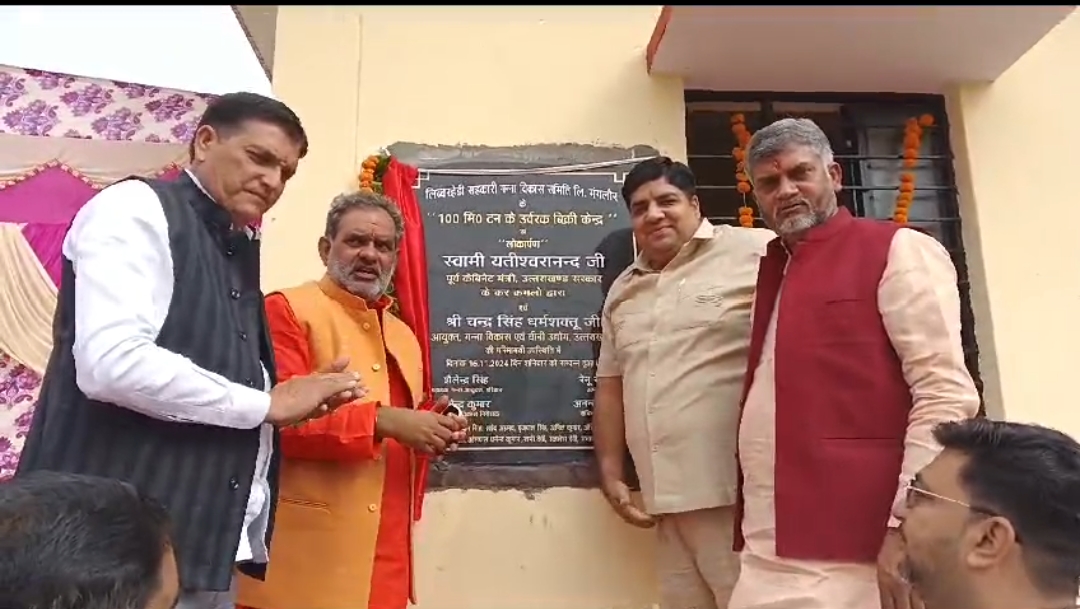 मंगलौर के लिबरहेड़ी गन्ना सिमिति के उवर्रक बिक्री केंद्र मुंडलाना का पूर्व केबिनेट मंत्री स्वामी यतीश्वरानंद ने उद्घाटन किया इस मौके पर क्षेत्र के तमाम किसान व उत्तम शुगर मील के कर्मचारियों सहित भाजपा के नेता मौजूद रहे