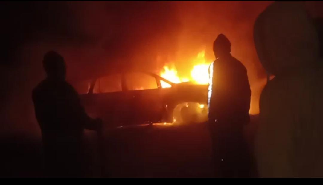 आग लगने के बाद कार चालक ने कार से बाहर कूदकर बचाई अपनी जान,